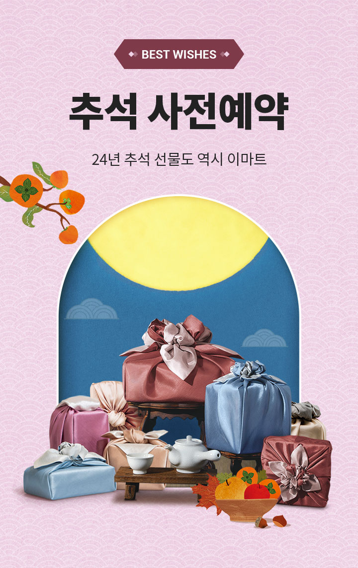 - 이마트 앱 메인 화면에서 ‘추석 선물세트 사전예약’ 배너를 클릭하여 사전예약 페이지로 이동합니다.